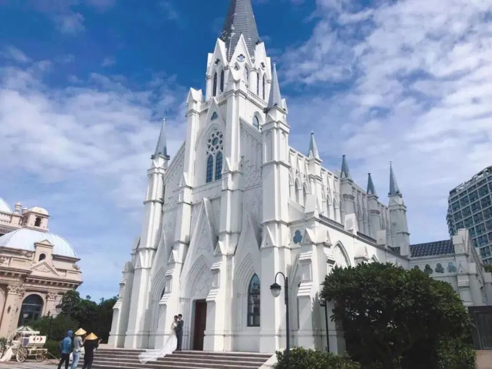 踏入吉庆广场,你将被这与充满欧式风格的建筑深深吸引,让人仿佛置身于伦敦街头;咸咸的海风包裹着的洁白教堂,目之所及皆是一场曲线与光影交织而成的盛宴。此刻,三亚的多元化风情将留存于你们的爱情中。
