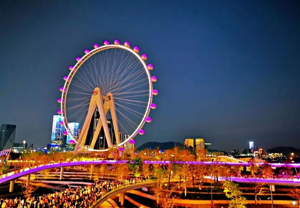 4??这里的夜景也已经美出圈,在公园可以远眺湾区之光摩天轮,每晚都有灯光秀,夜幕降临华灯初上时,如梦似幻。