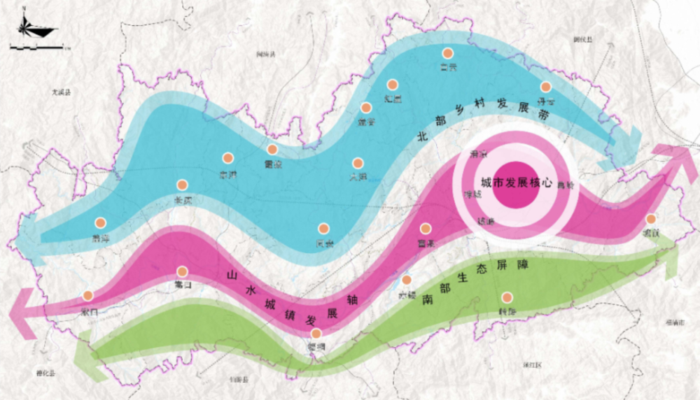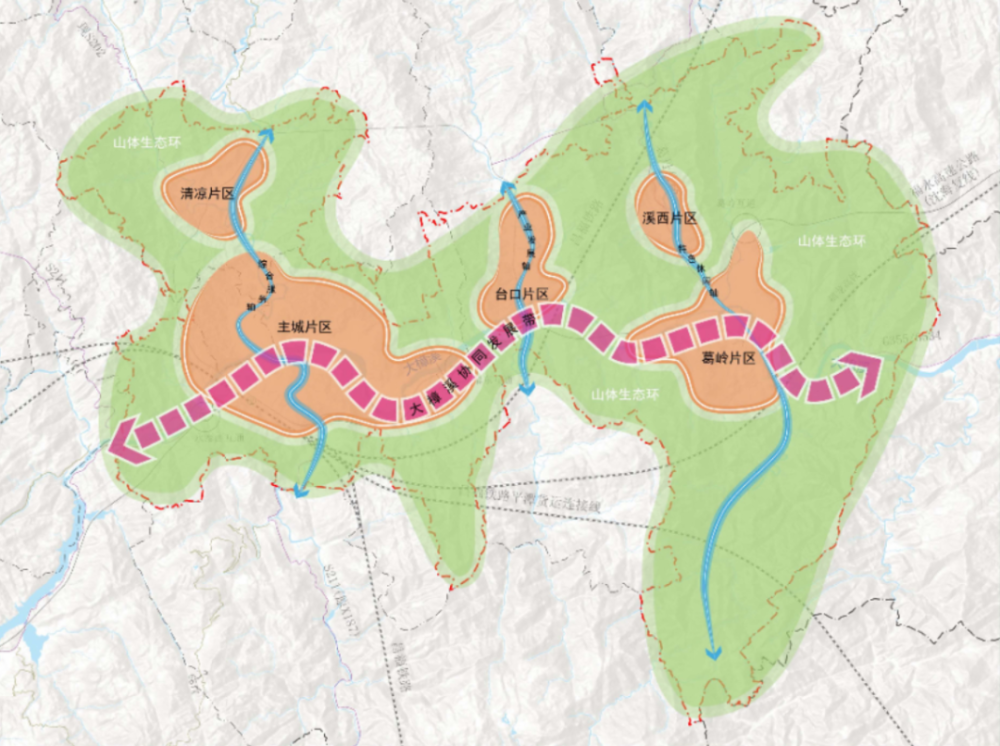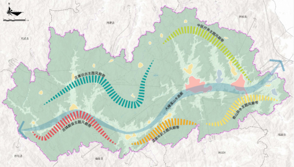 温泉水韵主题风貌带、奇山异水主题风貌带