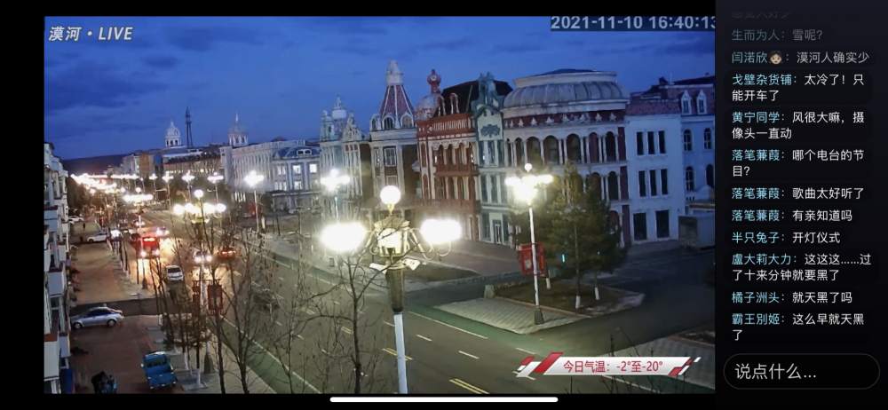 之前有人找我们的慢直播做广告,我拒绝了,因为我想让大家感受到的漠河是一个干净的世界。它是用一种不言语的状态在展示自己的魅力,它不是多么壮丽,很市井,很平常。比如早上起来有清洁工在扫大街,比如到了晚上夜幕降临繁星点点,它是一个自然呼吸的状态,它是一个有生命的活的城市,就像一个朋友一样。所以我们放的音乐也是懒散悠闲的,像生活一样,淡淡的,存在就好。