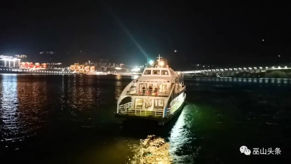 11月24日晚上19时,巫山两江四岸璀璨夺目。随着巫山旅游码头的鸣笛声响起,“三峡里”号游船缓缓动身,投入夜色如画的长江,大型长江情境夜游《三峡之光》预演开始启程。