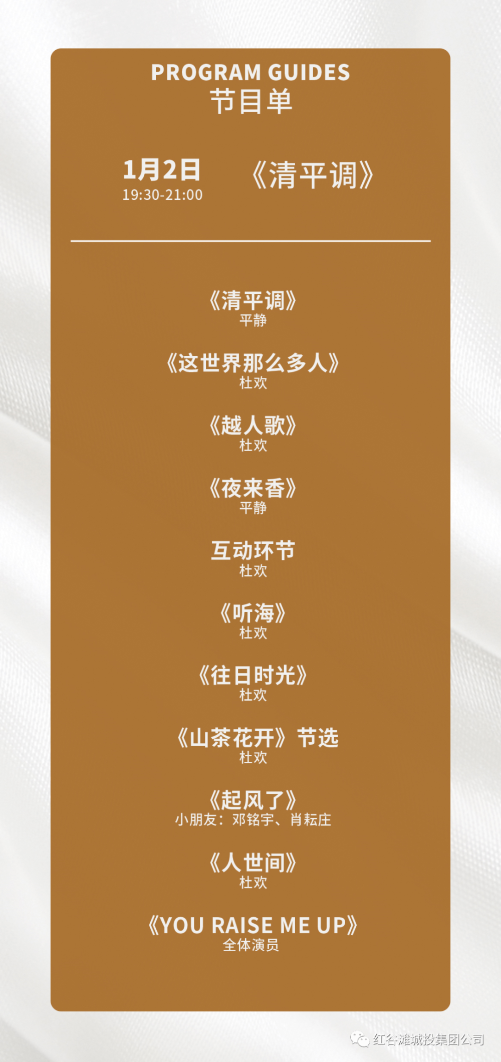 注:节目单仅作参考,讲演会具体节目以现场实际演出节目为准
