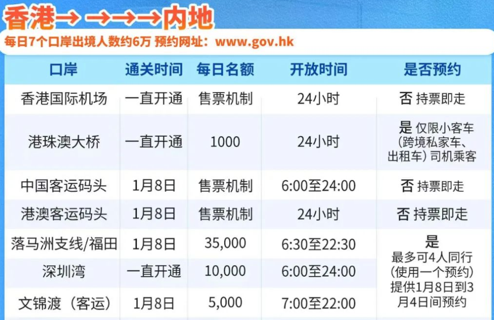 2、除内地居民外的旅客,从陆路口岸通关需先行预约,并取得有效的通关预约确认单才能过关;从机场港澳码头、中港码头、港珠澳大桥可直接买票过去,无需预约。