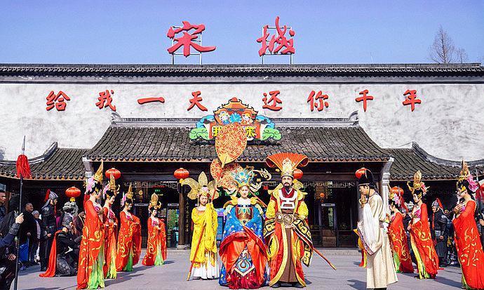 3、杭州宋城景区位于杭州西南市郊,是中国最大的宋文化主题公园,大型歌舞演出《宋城千古情》是其一绝。年接待游客1000万,宋城是中国非物质文化遗产集聚地。宋城景区在每天最后一场演出《宋城千古情》40分钟后闭园,最后演出时间根据季节会有调整。宋城千古情,演绎了几段杭州人文历史。良渚古人的艰辛、宋皇宫的辉煌、岳家军的惨烈、梁祝和白蛇许仙的千古绝唱,把丝绸、茶叶和烟雨江南表现得淋漓尽致,极具视觉体验和心灵震撼。用先进的声、光、电科技手段和舞台机械,以出其不意的呈现方式。
