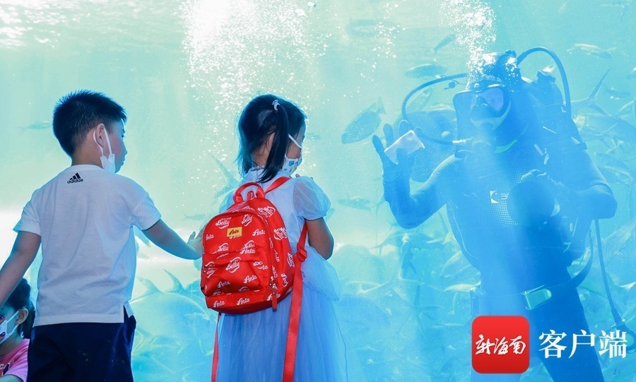 小朋友在观看美人鱼表演。记者沙晓峰摄