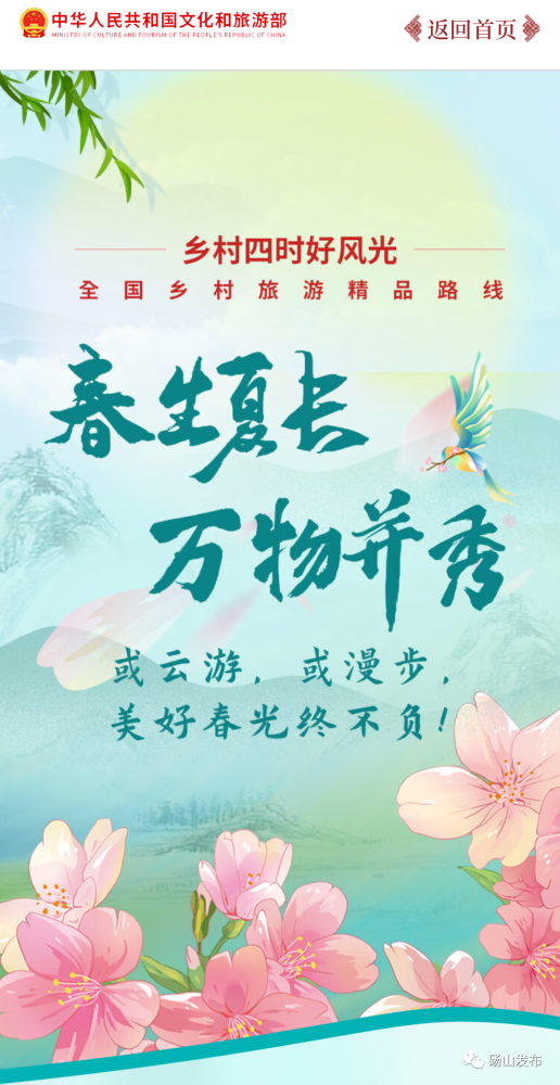 近日,文化和旅游部根据各地推荐,推出“乡村四时好风光——春生夏长 万物并秀”全国乡村旅游精品线路113条。