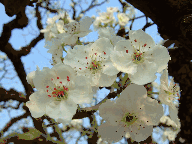 砀山酥梨的发源地,满园皆是百年古树,铁干嶙峋,乌麟斑驳,枝桠遒劲,横空逸出,蔚为壮观。砀山梨树王、梨树神长于其间,花开时节,满树花白如雪;虬曲如龙,披一身银装,洒漫天寒香,一副乌龙披雪的美景。