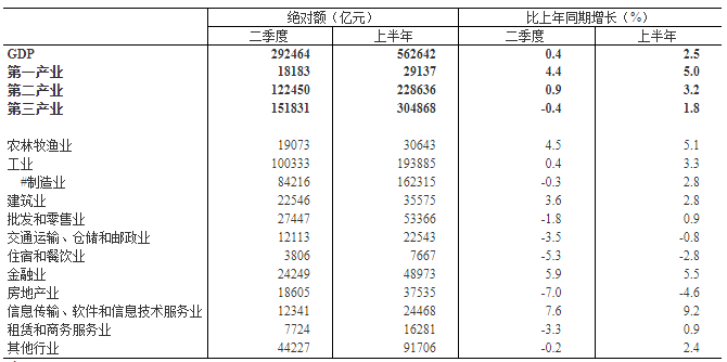 2022年2季度和上半年GDP初步核算数据