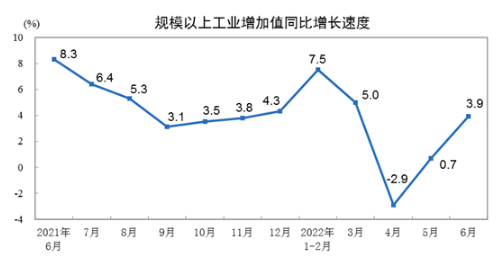 图表 10 2021年6月-2022年6月规模以上工业增加值同比增长速度