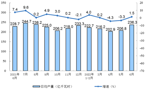 2021年6月-2022年6月发电量同比增速及日均产量