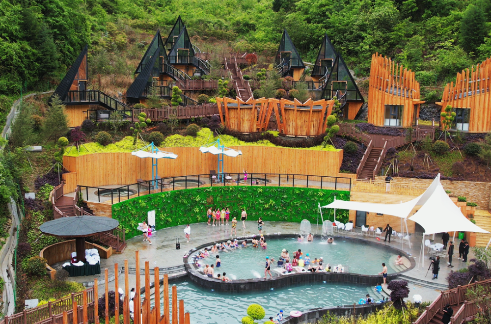 背倚松竹苍翠之地,潺潺小溪环绕而过,泡池掩映在林间,一边泡温泉一边赏美景,看花草簇拥,望溪水长流,把喧闹挡在屋外,让大人和孩子都能独享一处宁静和轻松。
