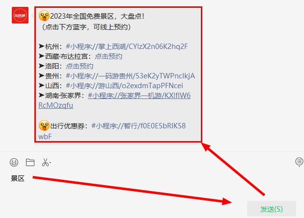 在主页对话框回复【景区】