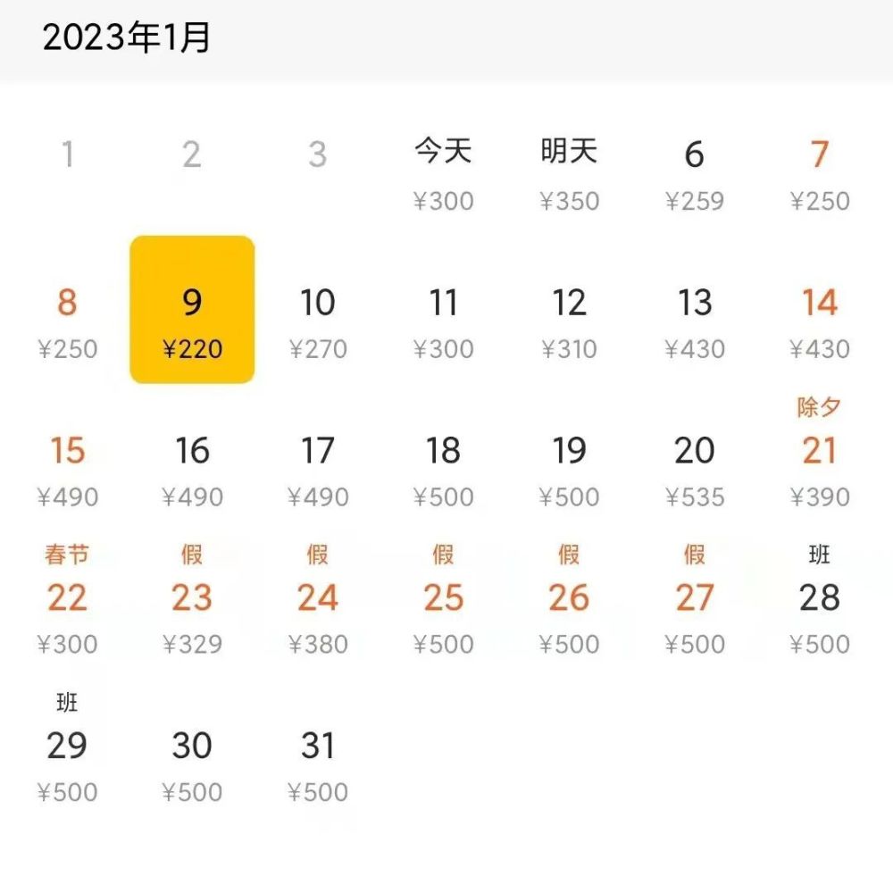 1月最低价:220元(1月9日)