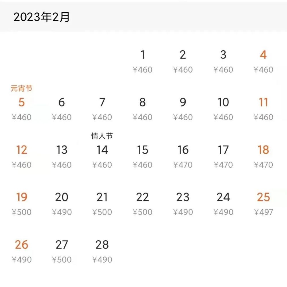2月最低价:460元(2月14日)