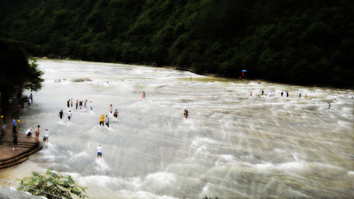 位于福建省宁德市屏南,是国家AAAAA级旅游景区。因其奇特的地质地貌现象而被誉为“天下绝景,宇宙之谜”,是鸳鸯溪五大景区中最具特色的天然景观,三大浅水广场中,面积最大的中洋达4万平方米,最宽处182米,每年盛夏都要在此举办水上运动会。景区有石笋岩、洞潭峡瀑等景。白水洋地质公园总面积达77.34平方公里,拥有全球唯一的鸳鸯猕猴自然保护区。