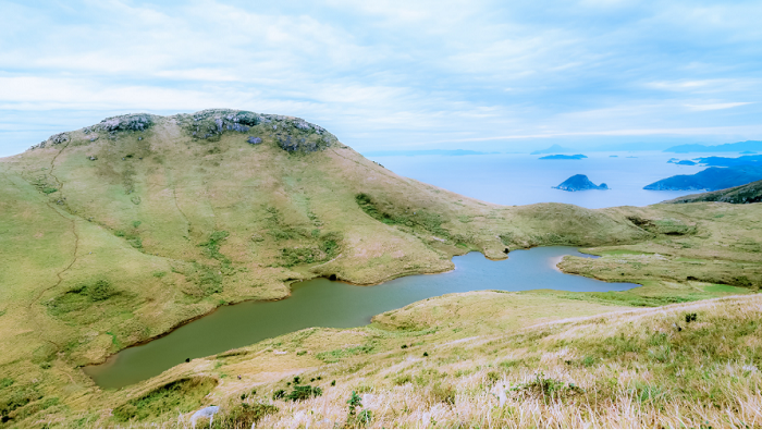 大嵛山岛直径5公里,面积21.22平方公里,最高处洪纪洞山海拔541.3米,为闽东第二大岛(闽东第一大岛为三都岛)。在海拔200米处,有大小两个湖泊。湖周围群峰环拱,其状似火山,嵛山岛也有由此得名,大天湖面积1000多亩,小天湖200多亩,两湖相隔1000多米,各有泉眼,清澈见底。湖四周山坡平缓,是有“南国天山”之誉的万亩草场。小嵛山岛面积3.28平方公里,沿岸礁石林立,海蚀地貌十分突出,构成奇特的景观,海拔仅50米,岛上植被茂密,栖息着成千上万只海鸥和其他候鸟,乍然飞起,十分壮观。