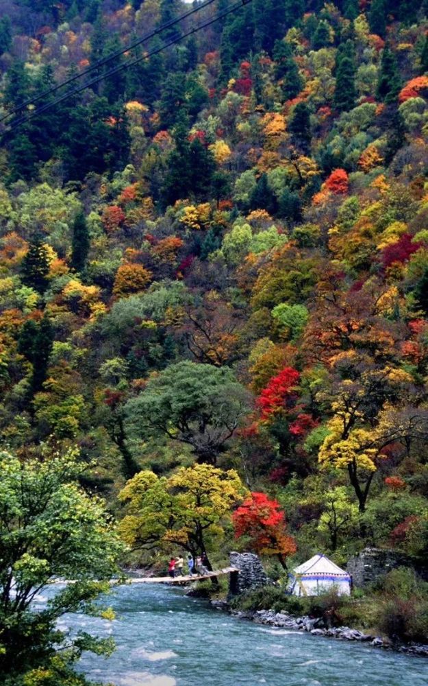 在深秋时节,来到米亚罗,看那铺天盖地的红叶,红的向火,灿烂如霞,随着山风吹来,五彩斑斓的彩叶,相互映衬,很有视觉冲击力。