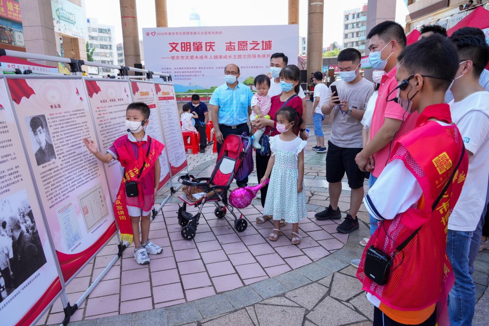 肇庆市少先队宣讲团小成员为市民讲党史故事。 曹笑 摄