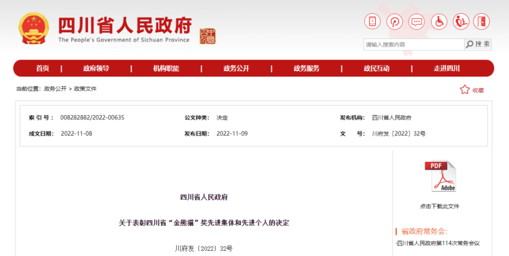 发布关于表彰四川省“金熊猫”奖