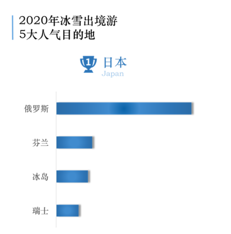 近年来,冰雪出境游日益流行,根据跟团游和自由行数据,今年最受中国游客青睐的冰雪旅游目的地国家分别是日本、俄罗斯、芬兰、冰岛、瑞士。其中,日本凭借优越的地理位置和丰富的冰雪资源,在出境游目的地中遥遥领先。