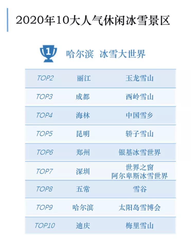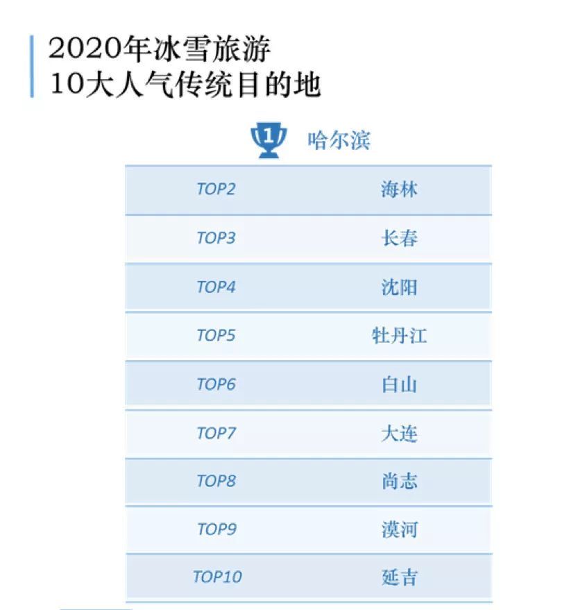 传统冰雪旅游目的地排行榜:东北地区品牌优势明显