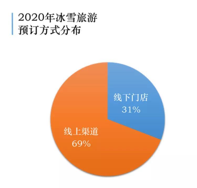 随着互联网时代带给人们的便利程度越来越高,在旅游预定方式上,69%的游客选择通过线上的渠道进行预订,方便快捷更节省时间,这说明冰雪旅游目的地的资源已经越来越透明,游客能够自主对产品做出选择进行下单。