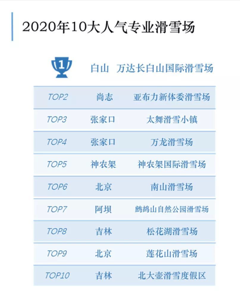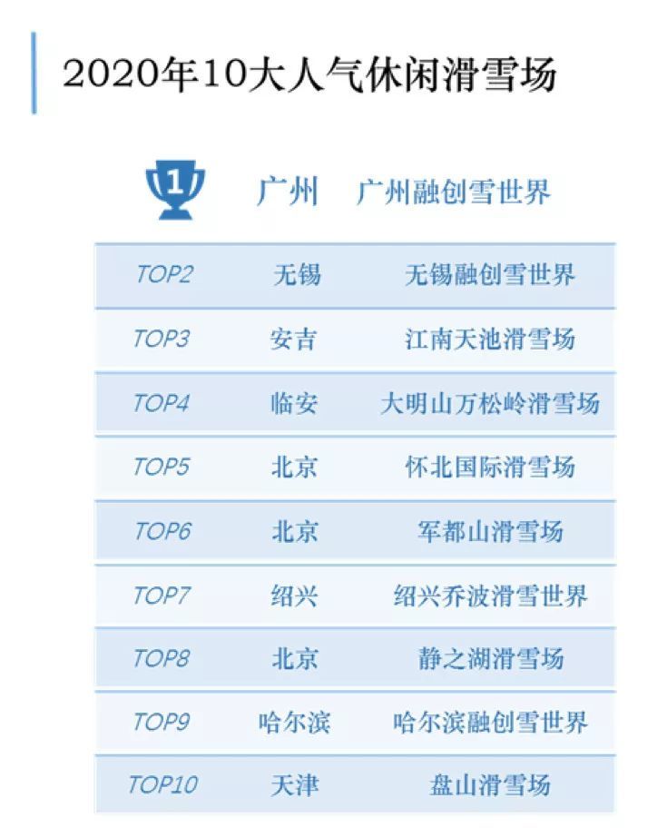 这些滑雪场以初级雪道为主,适合家长带着孩子来享受难得的雪上时光,有趣的是,人气最高的前4名的滑雪场均位于南方。