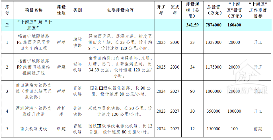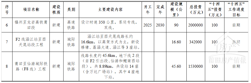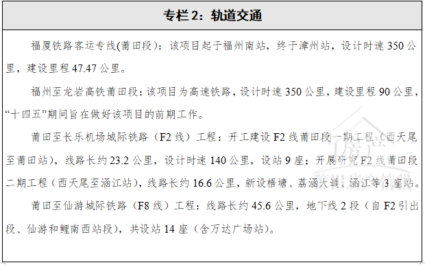 附表 1 莆田“十四五”轨道交通建设项目计划表