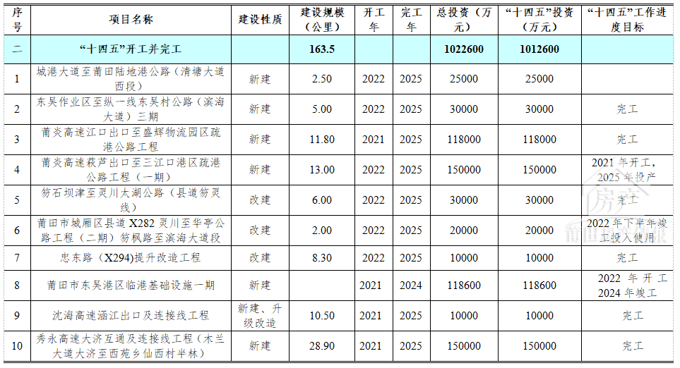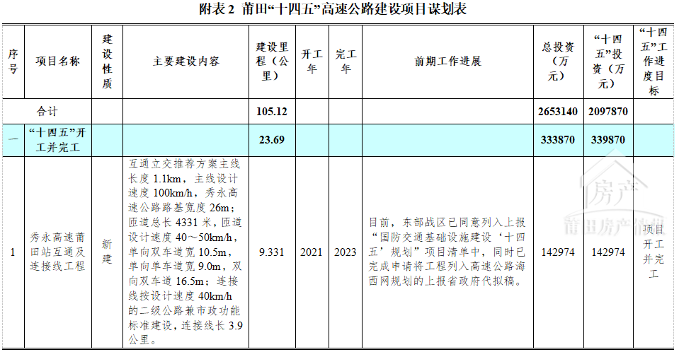 附表2 莆田“十四五”高速公路建设项目谋划表
