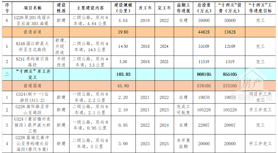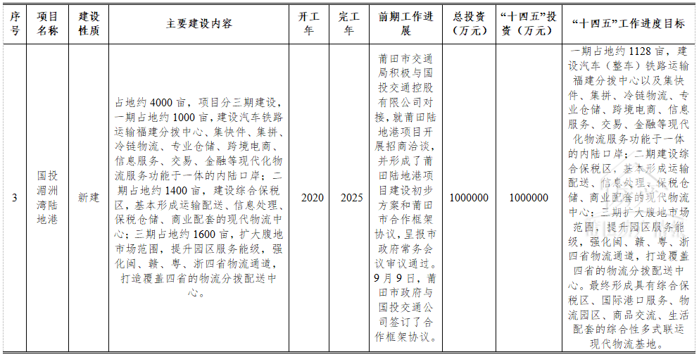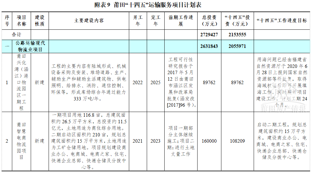 附表 6 莆田“十四五”港口、物流园区集疏运建设项目(集疏运公路)计划表
