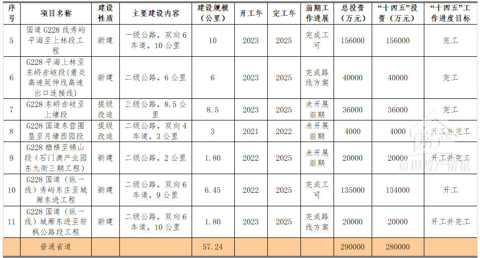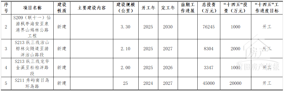 附表3 莆田“十四五”普通国省干线建设项目谋划表