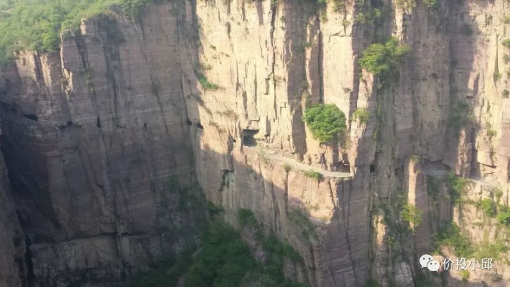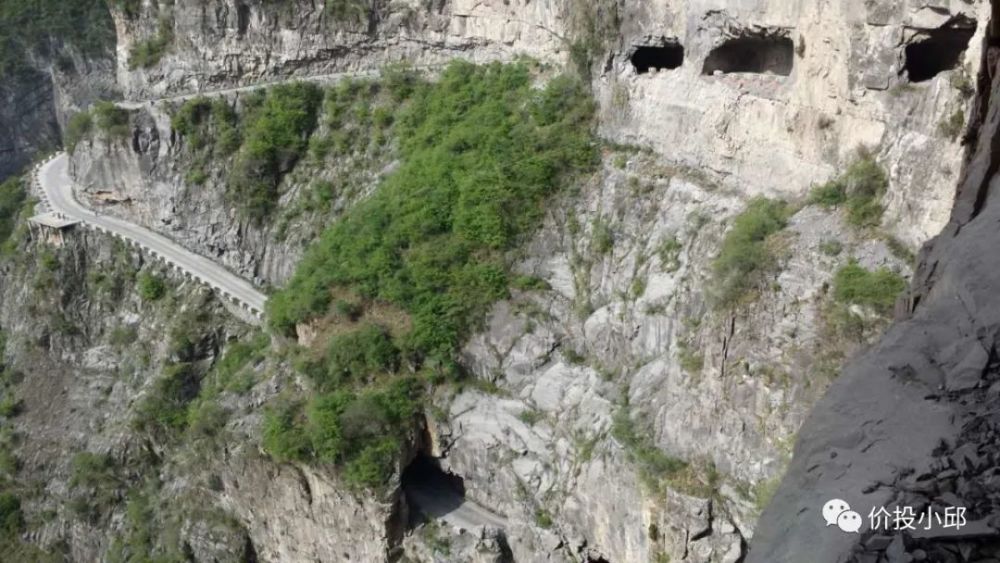 吃完早餐8点半出发,从东庙华村到锡崖沟挂壁公路大约10分钟,一直沿着盘山公路下行,想超小路下山都不行,每个转弯的地方都是陡崖,只得老老实实地走公路。锡崖沟挂壁公路比较长,而且一直在崖壁上蜿蜒。从上面可以看到下面的路况,每个“窗户”都没有护栏,看起来挺吓人的。但锡崖沟挂壁公路肯定是比 郭亮 的壮观,而且不亲自下来走走是不能体会到其中的惊险的,而路上同行的人却不多。快到锡崖沟的时候,发现地上写着不允许游客通过,锡崖沟挂壁公路比较险,一般只允许景区大巴通过的。