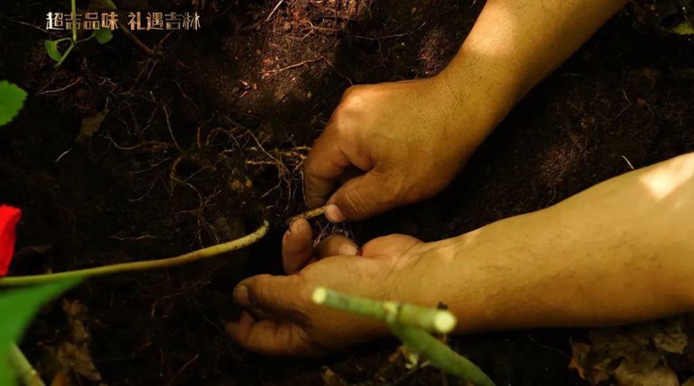 但现在挖人参系红绳,一是放山文化的一种行为延续,二是为了拽住根部,方便顺人参长势挖参,防止出现不便或破损。