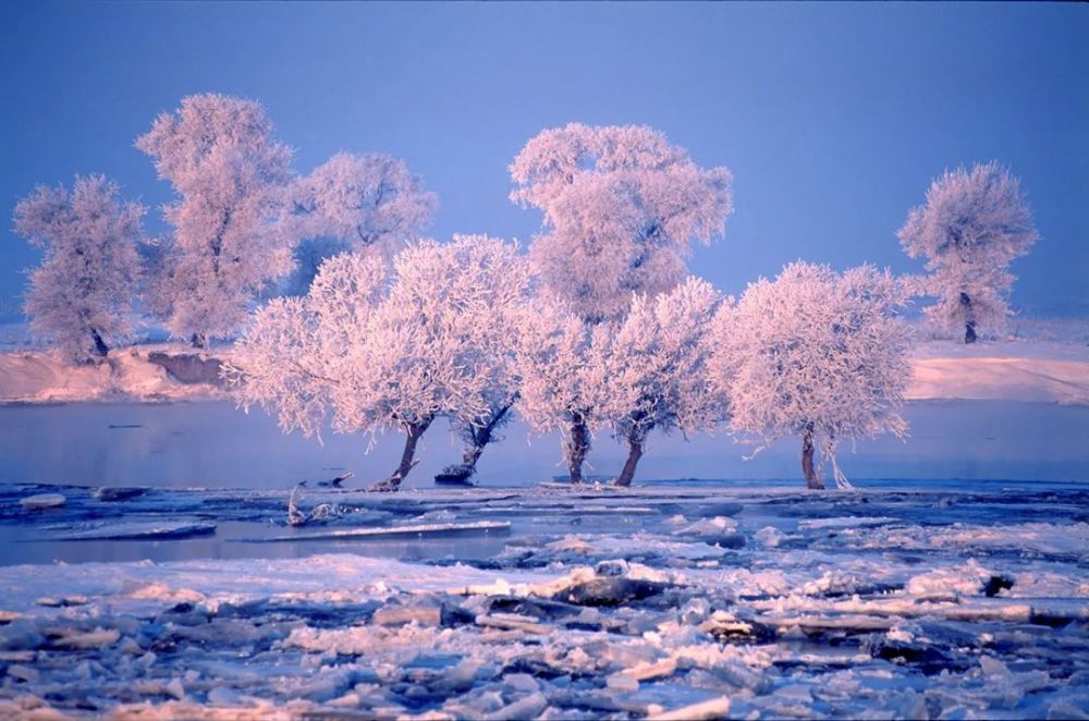 呼伦贝尔的冬天,曾有过零下60度的奇景。冬季的呼伦贝尔,是一个让任何语言都显得苍白的地方,每座山、每条河、每条道路都美成童话世界。冰峰、雪岭、冰雕在这里组成了独特的雪韵。