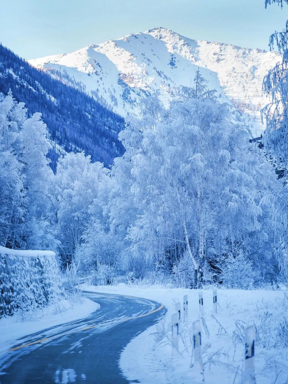 壮美山川河流与梦幻雾凇景致构成一片宁静的人间净土,此时的喀纳斯就是一幅极简主义的山水画,而正是这最简单的两色,却给出了最美的风景。