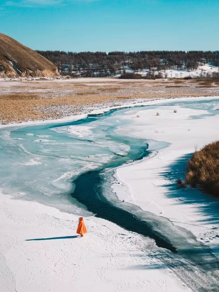目之所及皆被冰雪包围,对冬日的期许在这里统统可以实现。风在这里也有声音,吹得林中叮叮当当的响。冷在这里也有温度,手脚冻得冰凉,但是还是忍不住撒欢。可以在村里租一辆雪橇,在结冰的河面上驰骋,一路向北望向最北端的中国界碑。