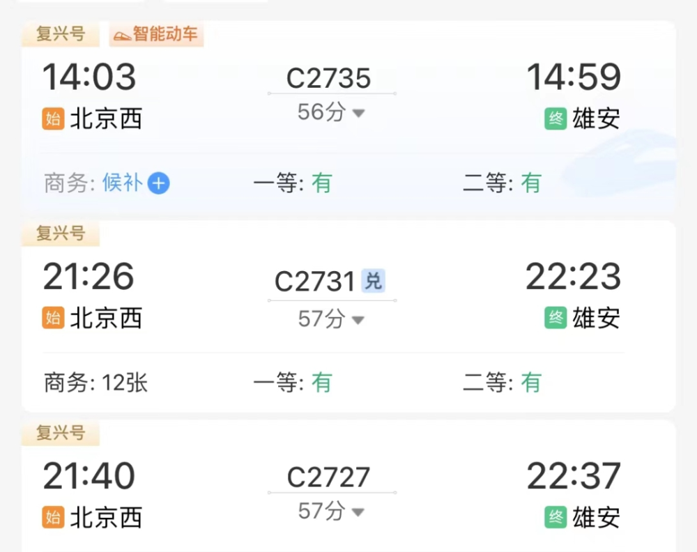 2020年12月27日京雄城际铁路开通运营。目前北京到雄安新区高铁运行最短时间为56分钟。
