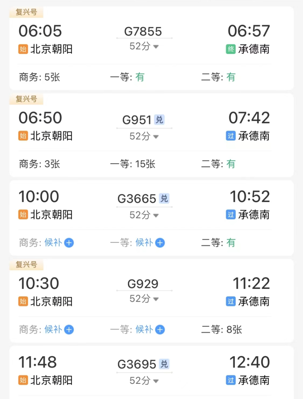 2021年1月22日京哈高速铁路京承段正式开通运营。目前北京到承德高铁运行最短时间为52分钟。