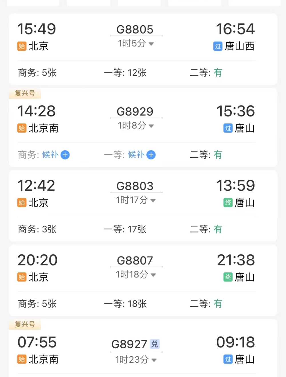 2022年12月30日京唐城际铁路开通运营。目前北京到唐山高铁运行最短时间为1小时05分。