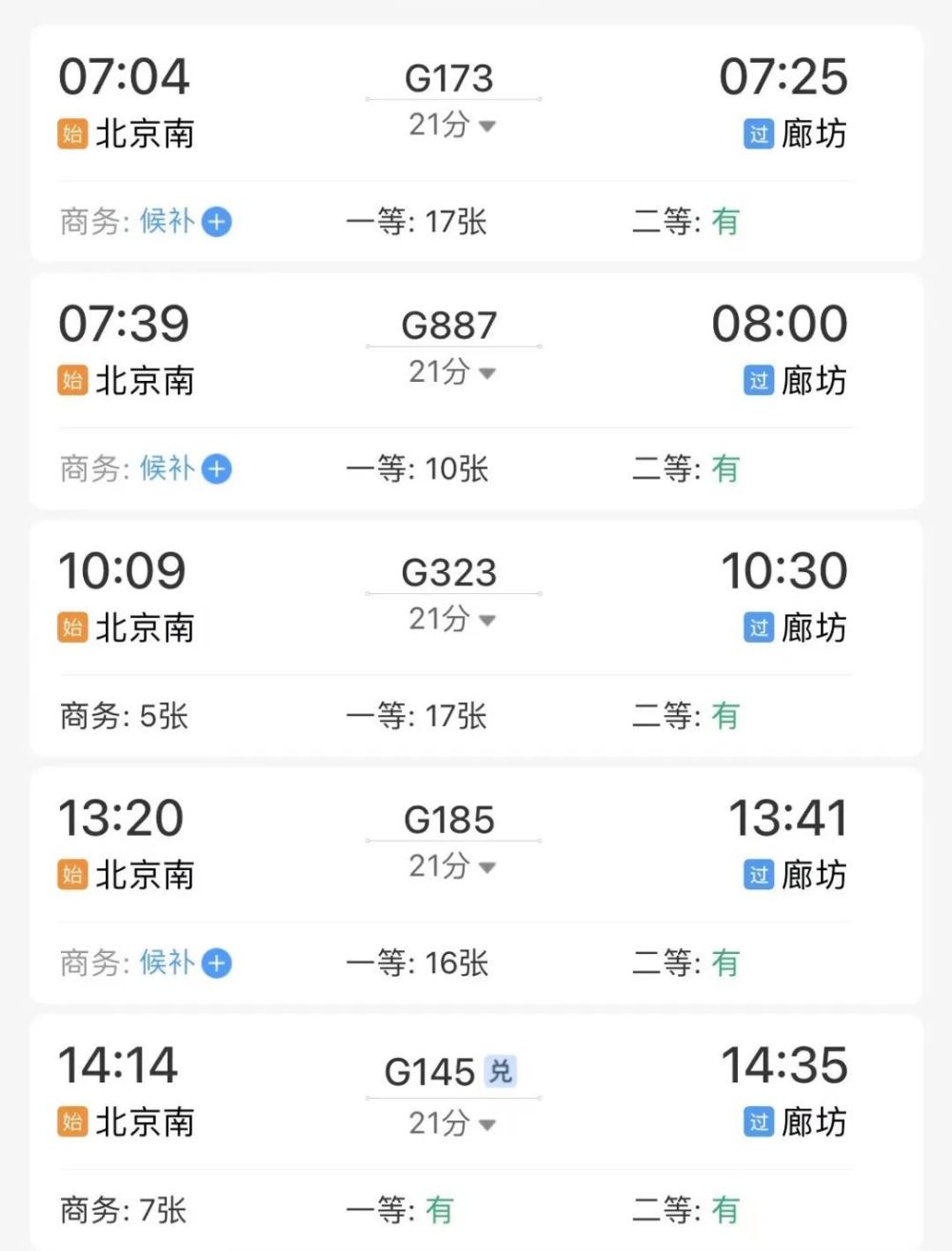 2022年12月26日零时起,全国铁路2023年一季度调图开始实行。目前北京到石家庄高铁运行最短时间为1小时。
