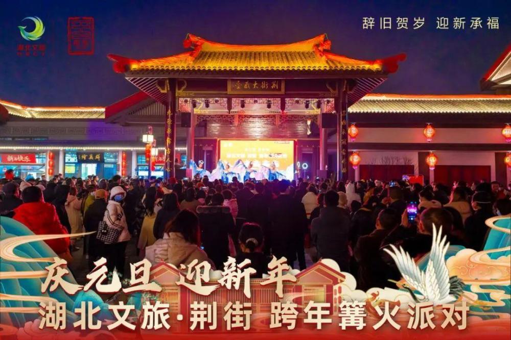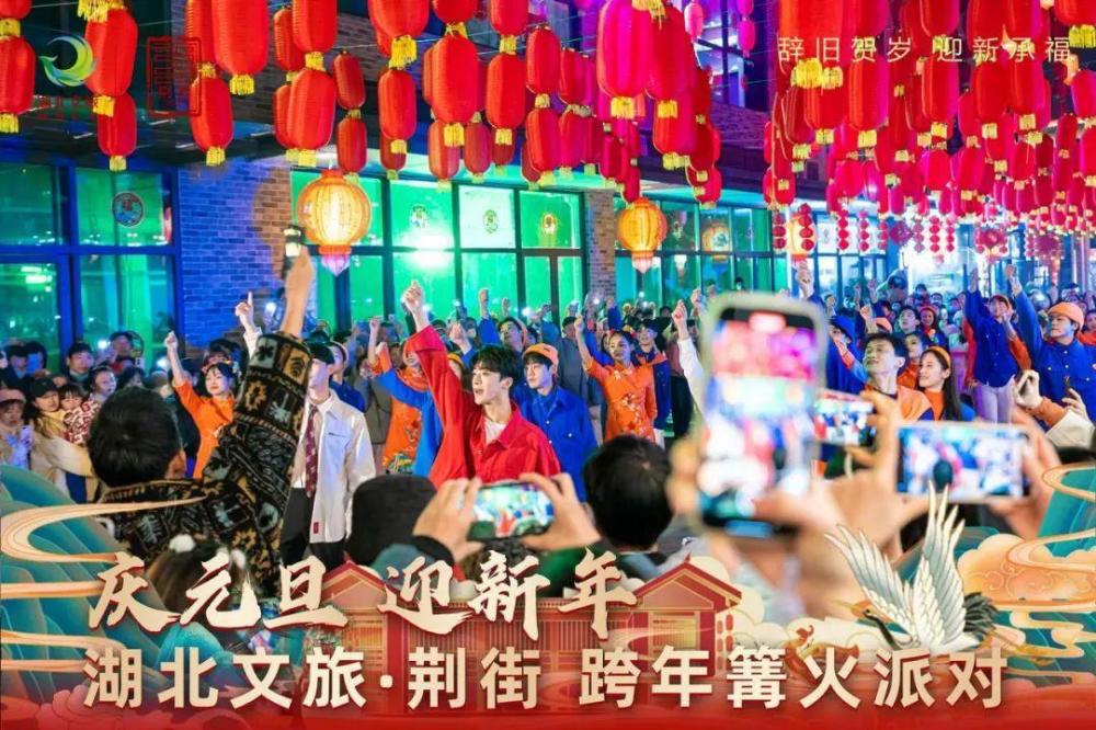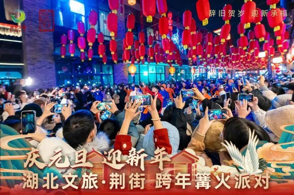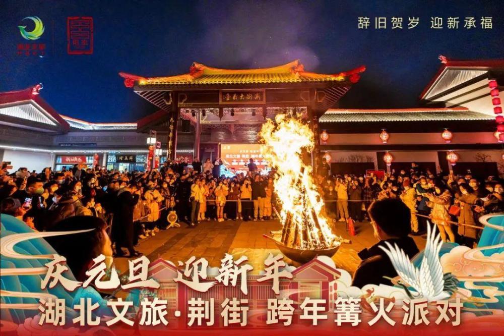 荆州荆街开展“跨年篝火派对”活动,喜庆祥和的新年氛围随盏盏花灯和绚烂篝火充盈着荆街各处。来到荆街的人们在此欢乐跨年迎新纳福,共祈平安。
