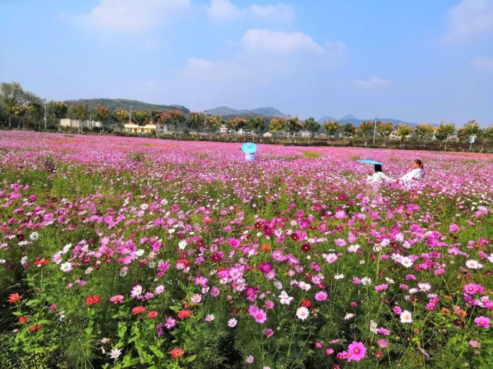 随州的“花田故事”田园综合体素有盛名,“花田故事”的位置在随州广水市余店镇古城村,村中的古城畈是西周时期遗址,四周建有城墙,“花田故事”正是以古城畈为中心,与古村、田园共同勾勒出一派安宁悠闲的田园生活。