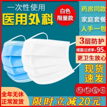 ¥25口罩一次性医疗口罩三层白色医生专用医护防尘透气医用外科口鼻罩淘宝月销量1000¥24.9¥70购买