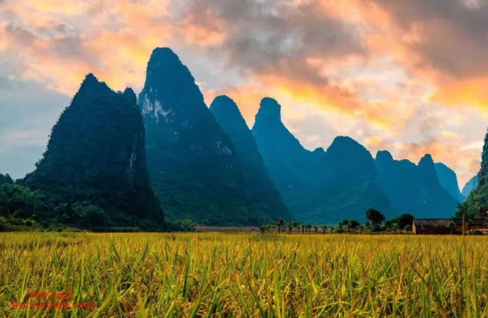 沃野罩轻烟,玉柱直擎天,牧童挥着鞭,路转峰回荷池见,画廊百里映丝帘,似闯入了桃花源