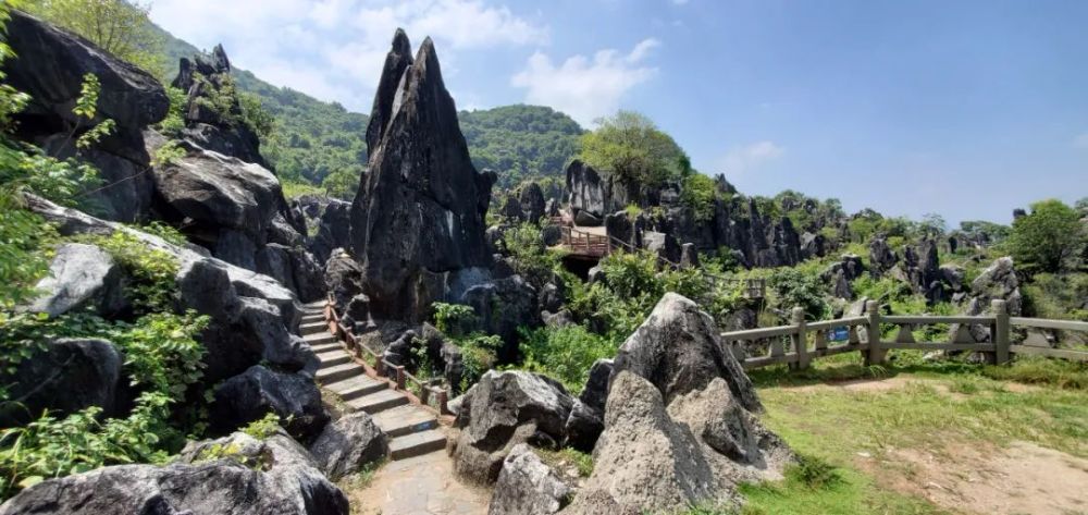 形成于500多万年前的第四期冰川,地层峰丛间石芽裸露、奇峰突兀,汉白玉石柱、石笋林立,行走其间“千年骆驼”、“空中走廊”等景观应接不暇,不禁想,跟它们一比,自己还很年轻。