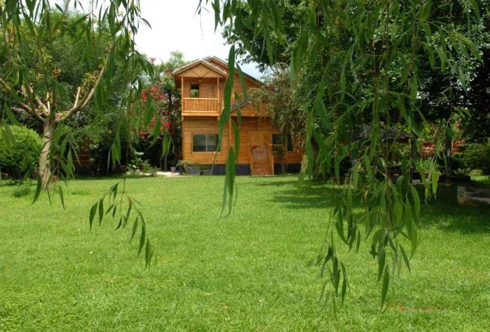 园内观光采摘园与休闲度假区隔河相望,设有休闲娱乐木屋和民宿 10 座,亦可选择在草坪露营,吃五星级农家饭。