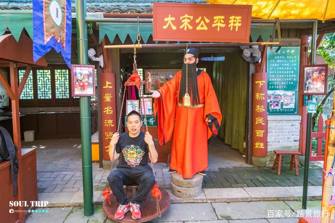 这些仿古的街区内,不但有一些琳琅满目的小玩意儿,还时常可以看到那些熟悉的面孔,扮演着他们熟悉的角色。武大郎正在卖着自家的烧饼,包公则是一杆匀称两边平,给大家拍照留念。