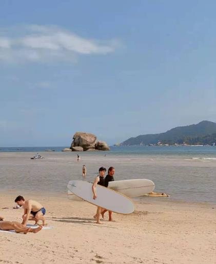 因其浅层的海水,细软的沙滩,稳定的浪型,成为冲浪初学者得天独厚的练习场。