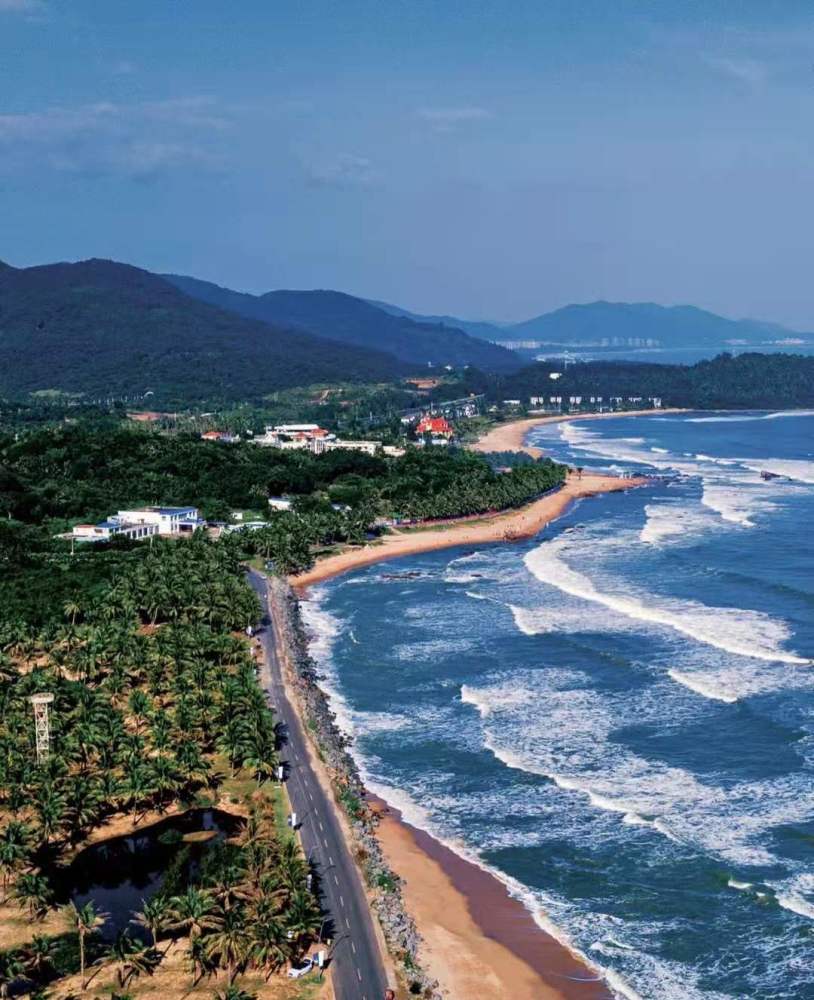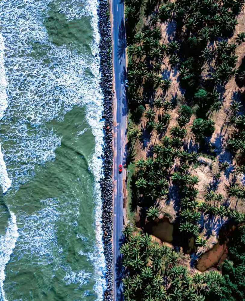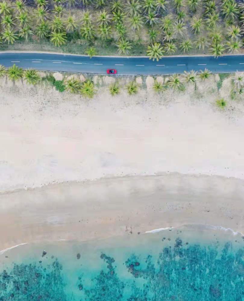 万宁日月湾有一条我认为是中国最美的沿海公路。这条公路不长,一边直接临海,另外一边是椰林,航拍镜头下呈现对称分布,真的超级美。