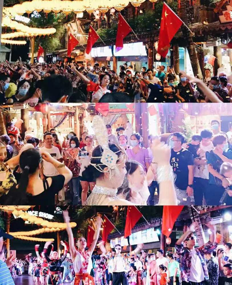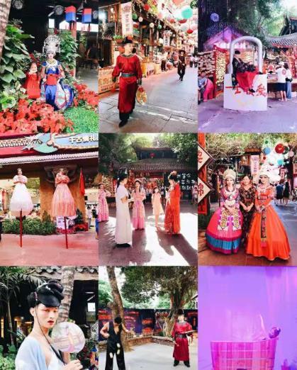 景区里的街道除了有各种特色小店外,就是随处都会有人在表演,或者让观众参与的节目。